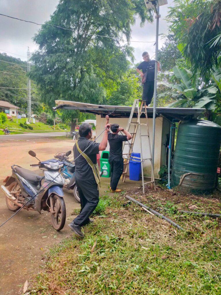 นายสุริยัน ปัญญา นายกองค์การบริหารส่วนตำบลสบป่อง มอบหมายให้บุคลากรฝ่ายงานกองช่างและเกษตรองค์การบริหารส่วนตำบลสบป่อง ซ่อมแซมกล้องวงจรปิดที่หน้าสวนสาธารณะเฉลิมพระเกียรติ เนื่องในโอกาสมหามงคลพระราชพิธีบรมราชาภิเษก พ.ศ. 2562 องค์การบริหารส่วนตำบลสบป่อง กรมส่งเสริมการปกครองส่วนท้องถิ่น อำเภอปางมะผ้า จังหวัดแม่ฮ่องสอน