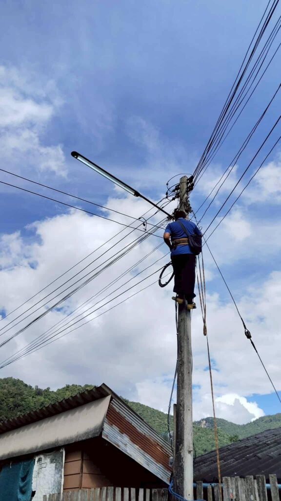 ซ่อมแซมไฟกิ่ง เพื่อเพิ่มแสงสว่าง ณ บ้านท่าไคร้ หมู่ที่ 3 ข่าวสารและกิจกรรม, อบต.สบป่อง เมื่อวันที่ 24 กันยายน 2568นายสุริยัน ปัญญา นายกองค์การบริหารส่วนตำบลสบป่องมอบหมายให้บุคลากรฝ่ายงานกองช่าง ซ่อมแซมไฟกิ่ง เพื่อเพิ่มแสงสว่าง ณ บ้านท่าไคร้ หมู่ที่ 3 ตำบลสบป่อง อำเภอปางมะผ้า จังหวัดแม่ฮ่องสอน จำนวนผู้อ่าน : 114