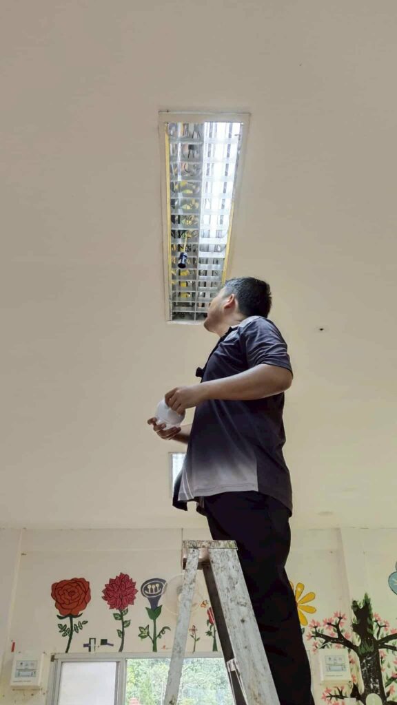 ซ่อมแซมไฟ ณ ศูนย์พัฒนาเด็กเล็กบ้านสบป่อง หมู่ที่ 1 ข่าวสารและกิจกรรม, อบต.สบป่อง เมื่อวันที่ 21 ตุลาคม 2568นายสุริยัน ปัญญา นายกองค์การบริหารส่วนตำบลสบป่อง มอบหมายให้บุคลากรฝ่ายงานกองช่างซ่อมแซมไฟ ณ ศูนย์พัฒนาเด็กเล็กบ้านสบป่อง หมู่ที่ 1 ตำบลสบป่อง อำเภอปางมะผ้า จังหวัดแม่ฮ่องสอน จำนวนผู้อ่าน : 51
