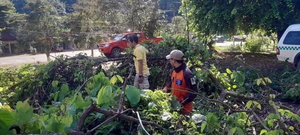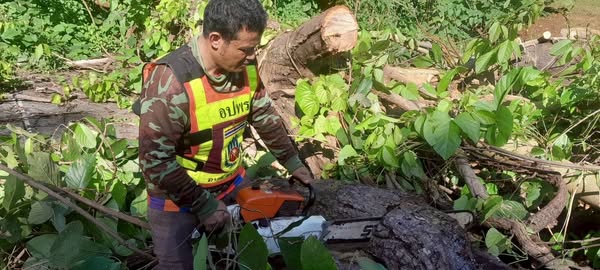ตัดต้นไม้ที่ล้มหน้าสถานีตำรวจภูธรปางมะผ้า
