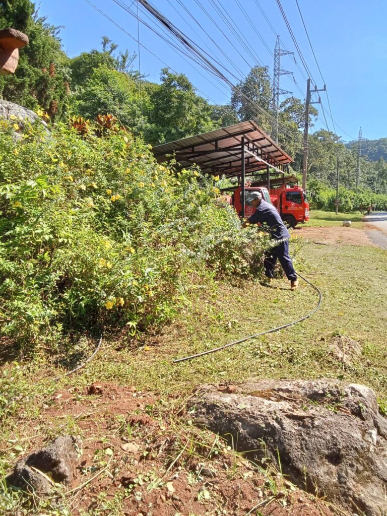 นายสุริยัน ปัญญา นายกองค์การบริหารส่วนตำบลสบป่อง มอบหมายให้นักการภารโรงองค์การบริหารส่วนตำบลสบป่อง ตัดหญ้าที่หน้าสวนสาธารณะเฉลิมพระเกียรติ เนื่องในโอกาสมหามงคลพระราชพิธีบรมราชาภิเษก พ.ศ. 2562 องค์การบริหารส่วนตำบลสบป่อง กรมส่งเสริมการปกครองส่วนท้องถิ่น อำเภอปางมะผ้า จังหวัดแม่ฮ่องสอน