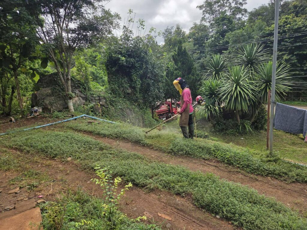 ตัดหญ้าที่หน้าสวนสาธารณะเฉลิมพระเกียรติ