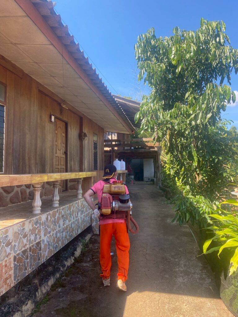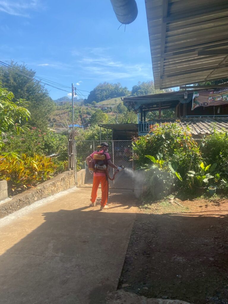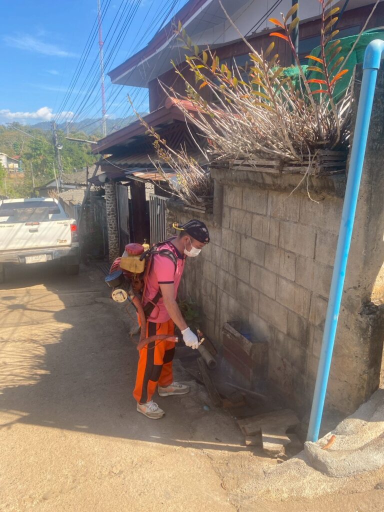 นายณรงค์เดช อัมพร ปลัดองค์การบริหารส่วนตำบลสบป่องมอบหมายให้บุคลากรฝ่ายงานป้องกันและบรรเทาสาธารณภัย และฝ่ายงานสาธารณสุขและสิ่งแวดล้อม ลงพื้นที่พ่นสารเคมีชนิด (ULV) กรณีเกิดโรคไข้เลือดออก ณ บ้านสบป่อง หมู่ที่ 1 ตำบลสบป่อง อำเภอปางมะผ้า จังหวัดแม่ฮ่องสอน