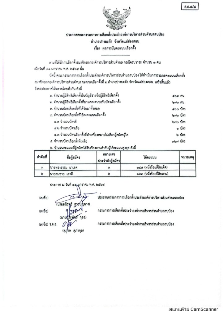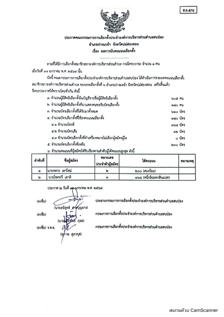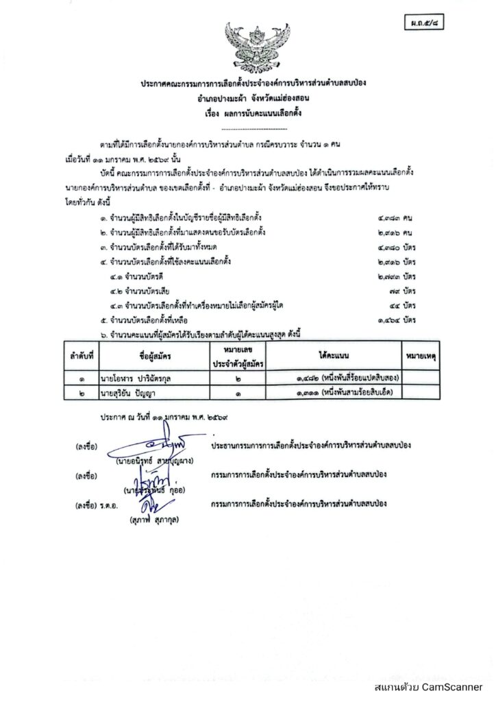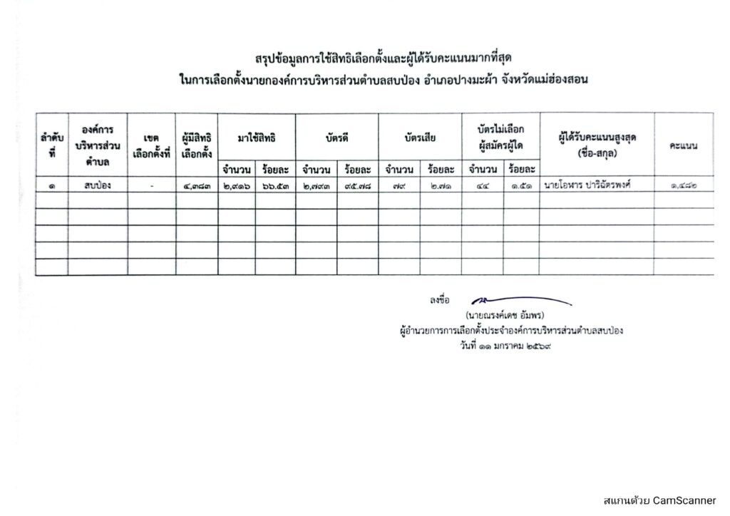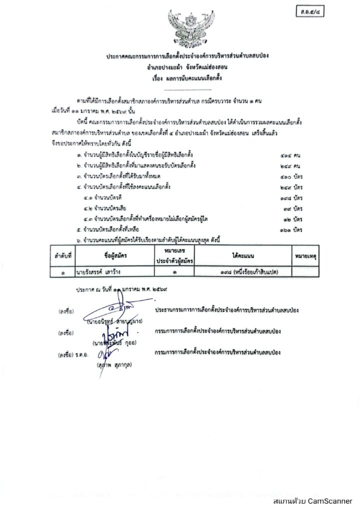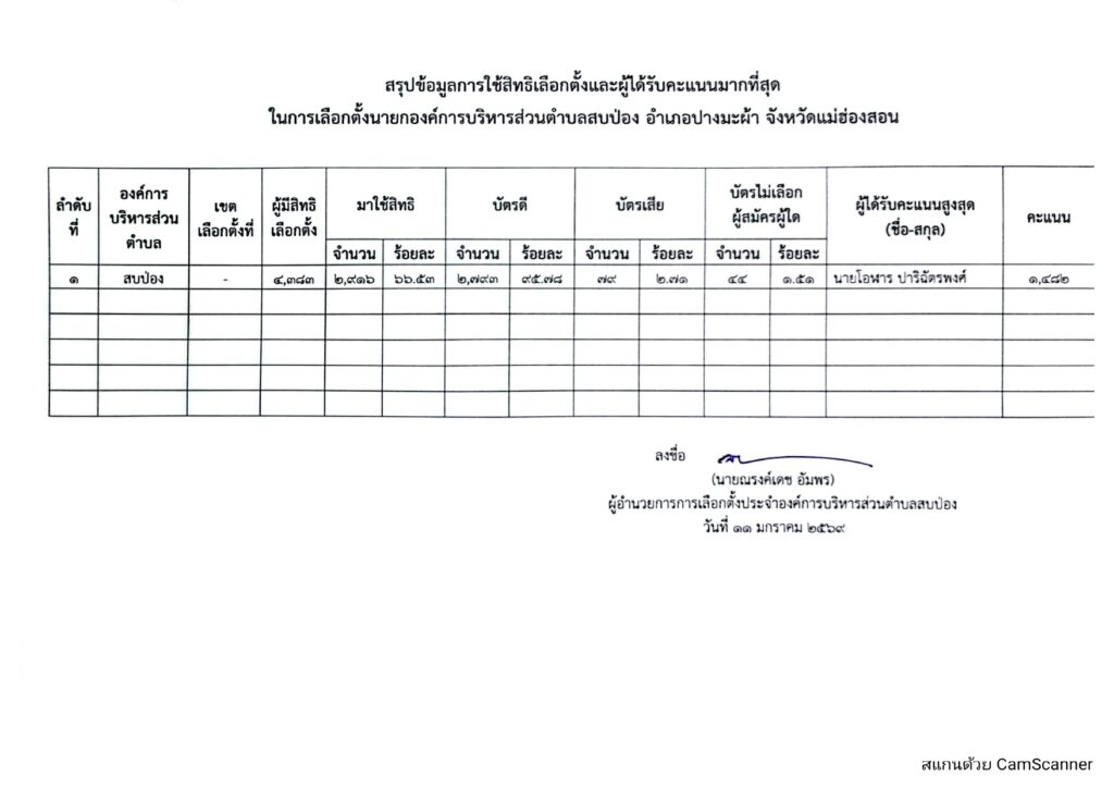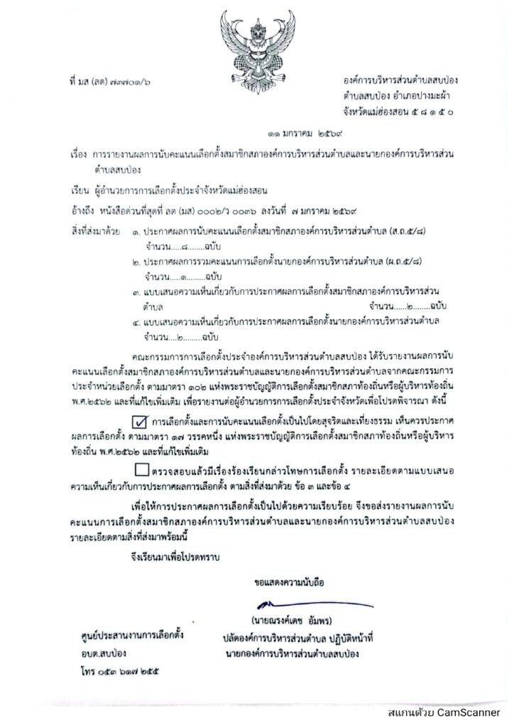 รายงานผลการนับคะแนนเลือกตั้งสมาชิกองค์การบริหารส่วนตำบลและนายกองค์การบริหารส่วนตำบล ข่าวประชาสัมพันธ์, อบต.สบป่อง เรื่อง การรายงานผลการนับคะแนนเลือกตั้งสมาชิกองค์การบริหารส่วนตำบลและนายกองค์การบริหารส่วนตำบล จำนวนผู้อ่าน : 70