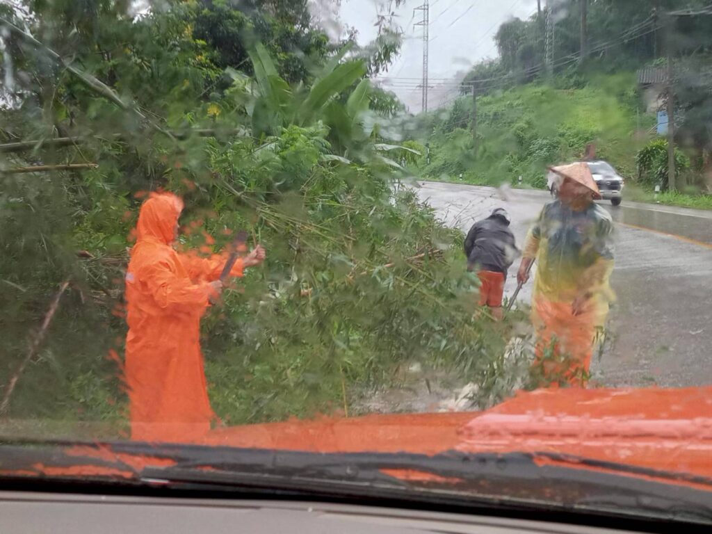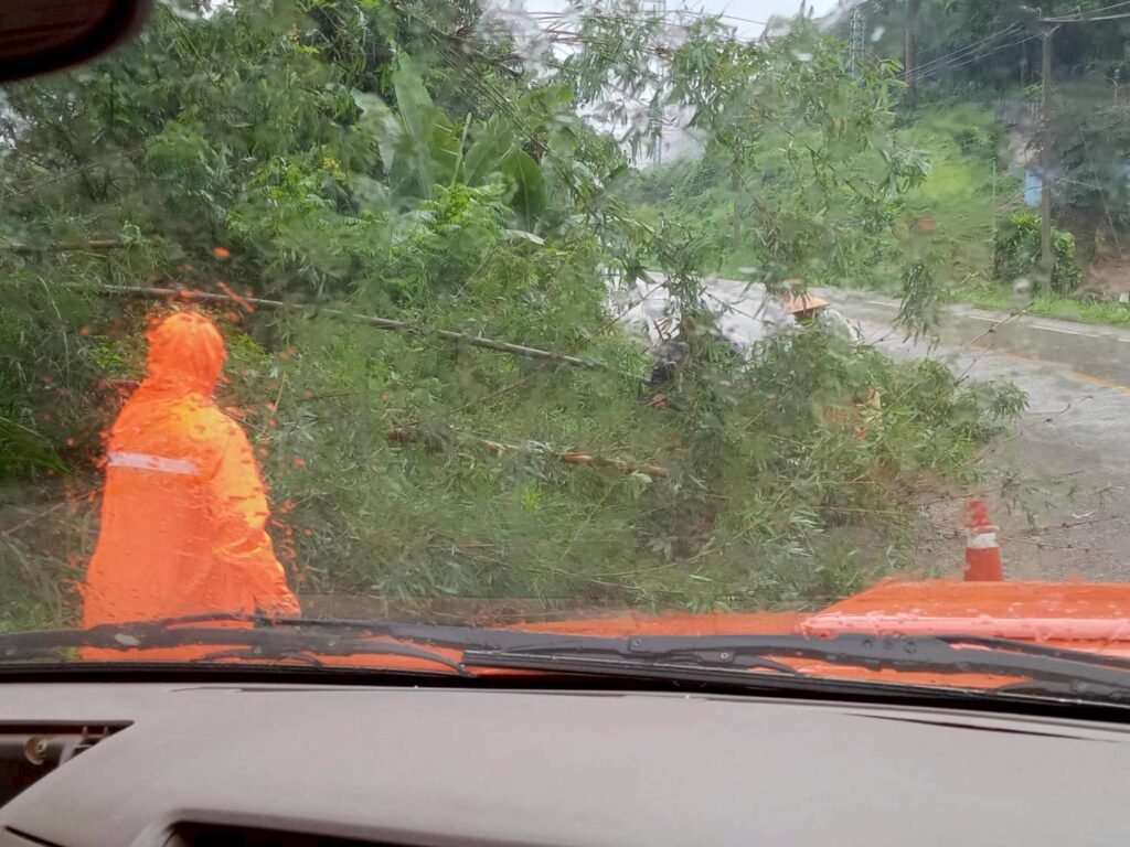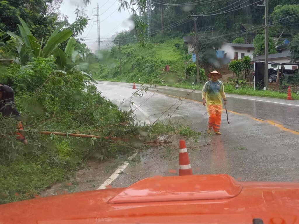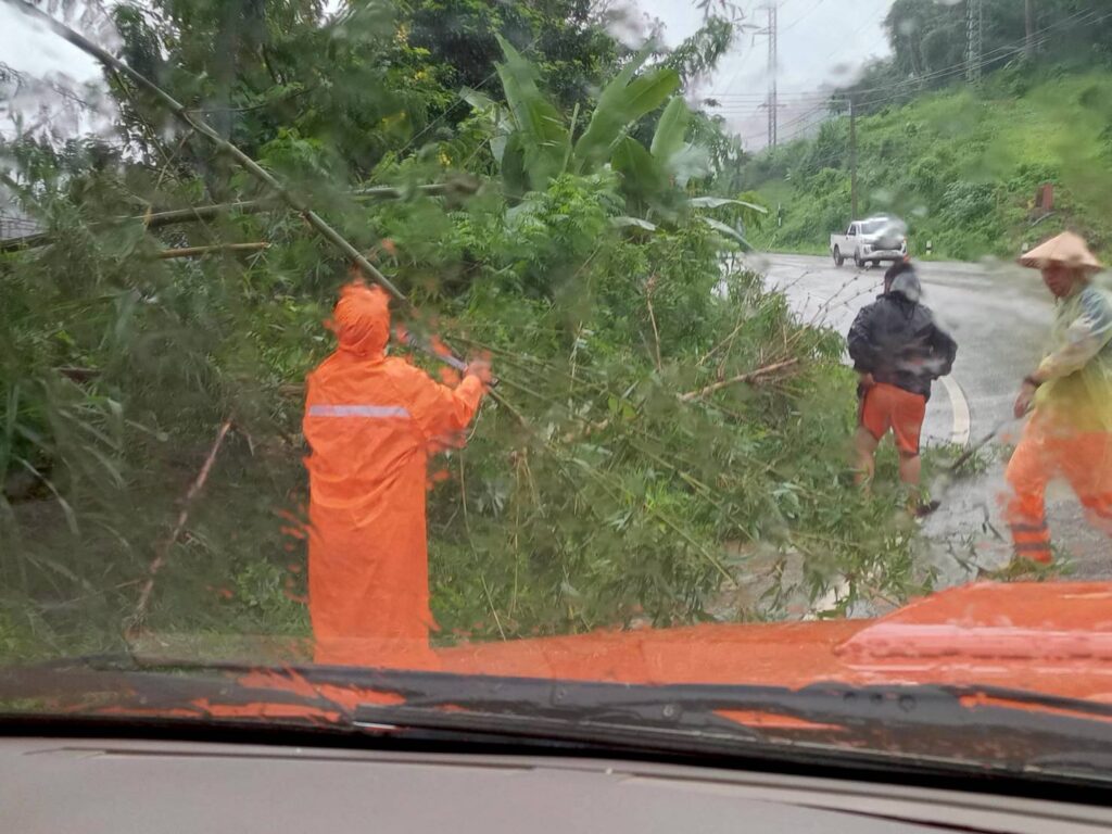 ลงพื้นที่ดำเนินการตัดต้นไม้บริเวณหน้าโรงเรียนอนุบาลปางมะผ้า