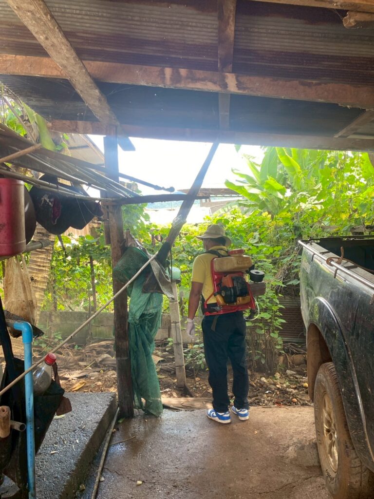 นายสุริยัน ปัญญา นายกองค์การบริหารส่วนตำบลสบป่องมอบหมายให้บุคลากรฝ่ายงานป้องกันและบรรเทาสาธารณภัย และฝ่ายงานสาธารณสุขและสิ่งแวดล้อม ลงพื้นที่พ่นสารเคมีชนิด (ULV) กรณีเกิดโรคไข้เลือดออก ณ บ้านหนองตอง หมู่ที่ 7 ตำบลสบป่อง อำเภอปางมะผ้า จังหวัดแม่ฮ่องสอน