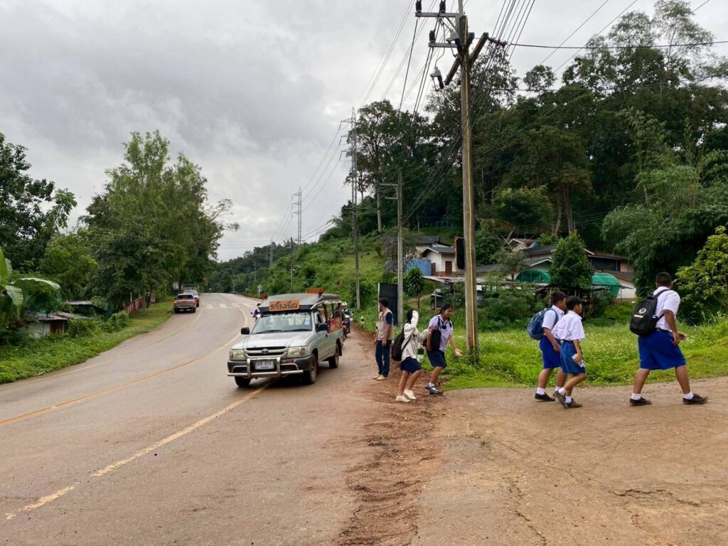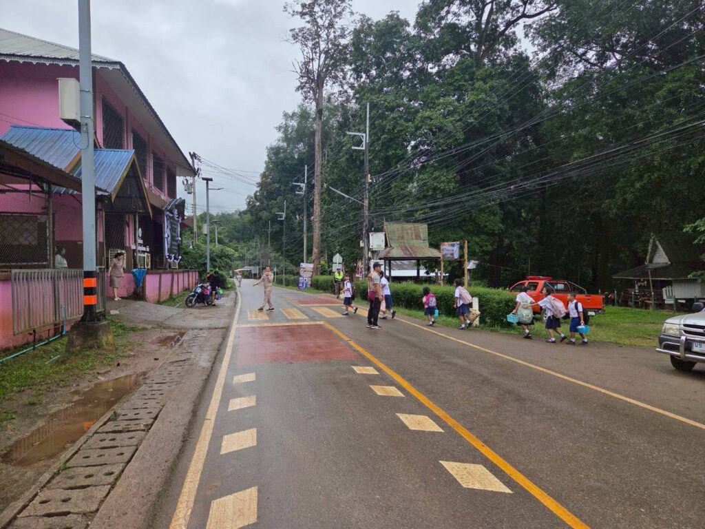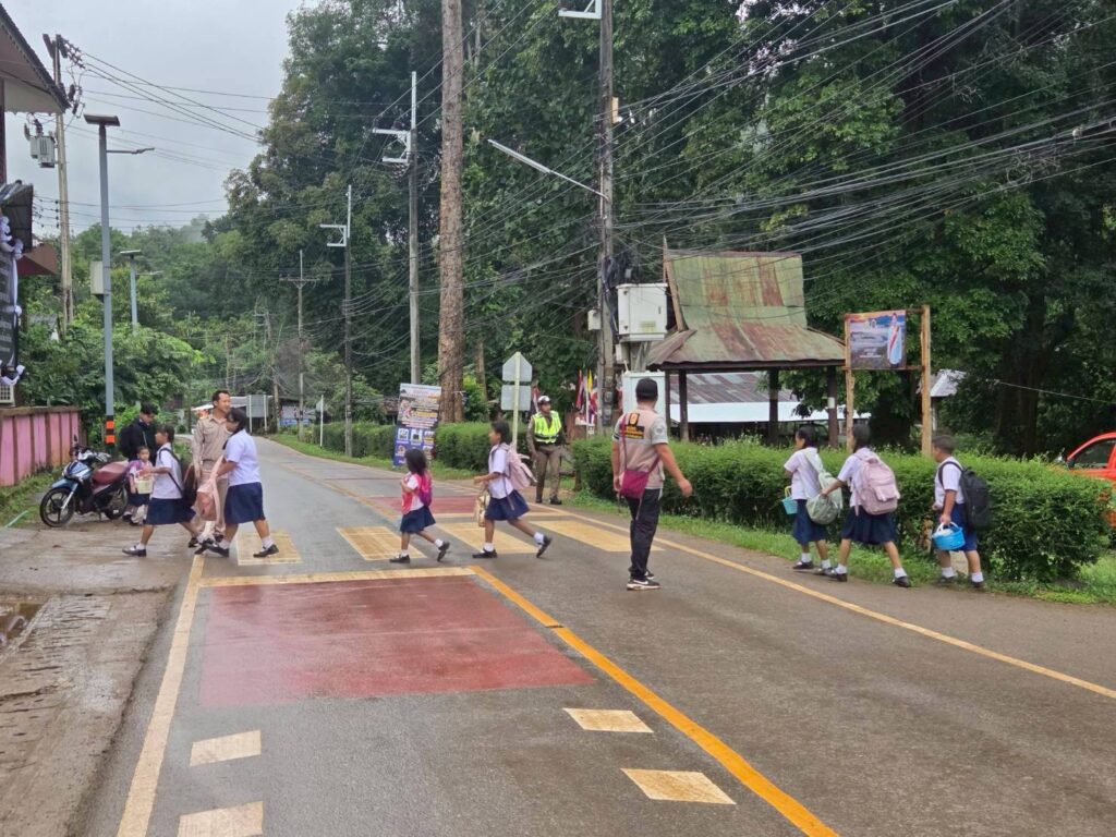 อำนวยความสะดวกการจราจร บริเวณหน้าโรงเรียนอนุบาลปางมะผ้าและบริเวณหน้าศูนย์พัฒนาเด็กเล็กบ้านสบป่อง