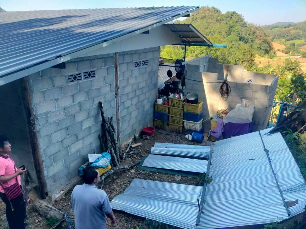 ได้รับคำร้องจากชาวบ้านหลังคาห้องน้ำปลิวเนื่องจากมีลมกระโชกแรง ณ บ้านน้ำริน หมู่ที่ 2 นายสุริยัน ปัญญา นายกองค์การบริหารส่วนตำบลสบป่องมอบหมายให้บุคลากรฝ่ายงานป้องกันและบรรเทาสาธารณภัย ลงพื้นที่สำรวจความเสียหายในพื้นที่ดังกล่าว