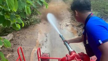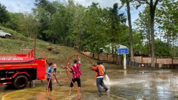 โรงพยาบาลปางมะผ้า ขอความอนุเคราะห์ดำเนินการฉีดล้างสนามบาส