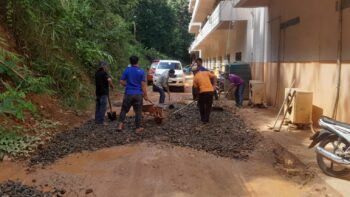 ช่วยกันเกลี่ยหินกรวดแม่น้ำถนน