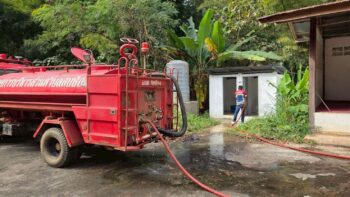 27 มกราคม 2026นำน้ำอุปโภค พ่นละอองน้ำที่สนามกีฬาหน้าที่ว่าการอำเภอปางมะผ้า